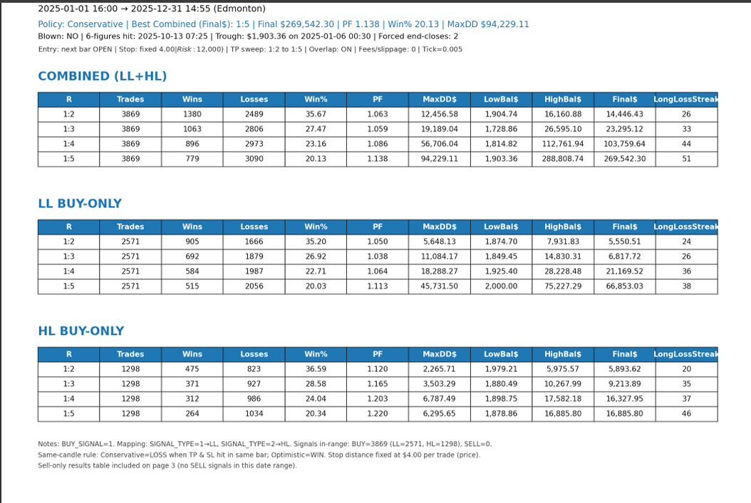 Notice that the higher the risk level, the higher the profit factor, but the lower the win rate.