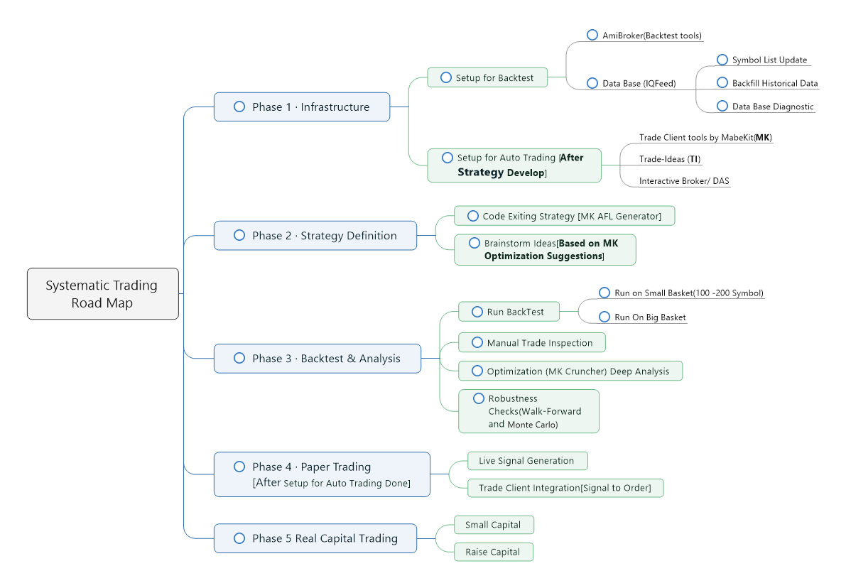 MabeKit user Aben created an excellent diagram for the entire workflow of creating a systematic trading strategy.