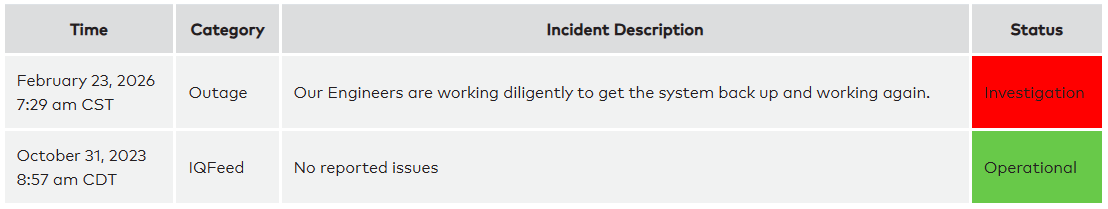 Yesterday, the IQFeed had a significant outage for an extended period.